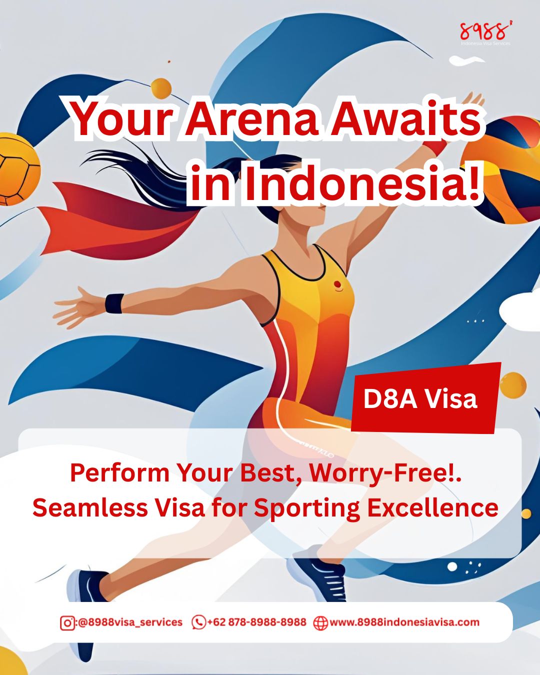 🏅 Ready to showcase your athletic talent in Indonesia? The D8A Sports Visa is specifically for athletes participating in competitions or training programs. Focus on your performance, and let us handle your visa process with ease. Reach your peak in Indonesia!