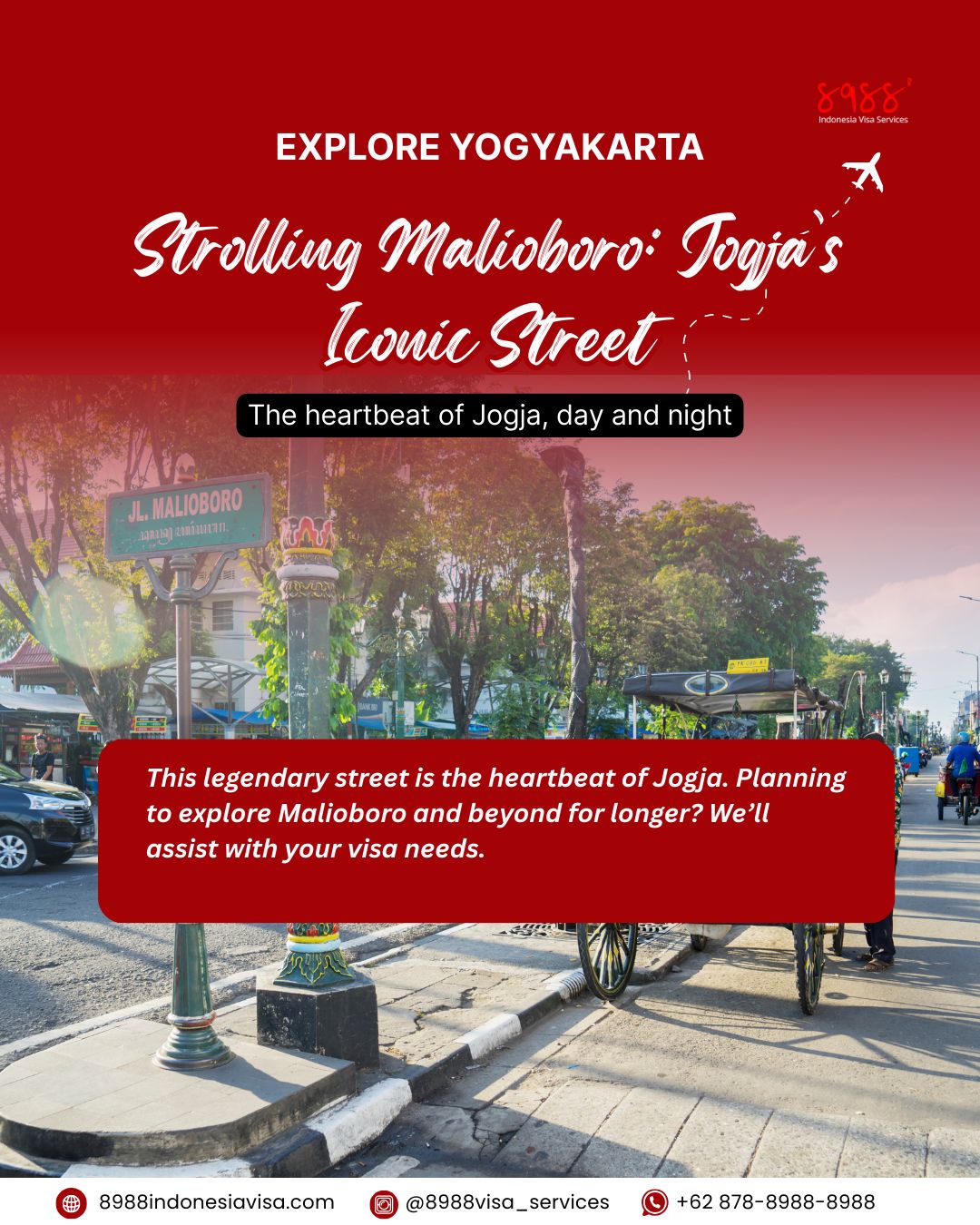 Planning to explore Malioboro and beyond for longer? Weโll assist with your visa needs.